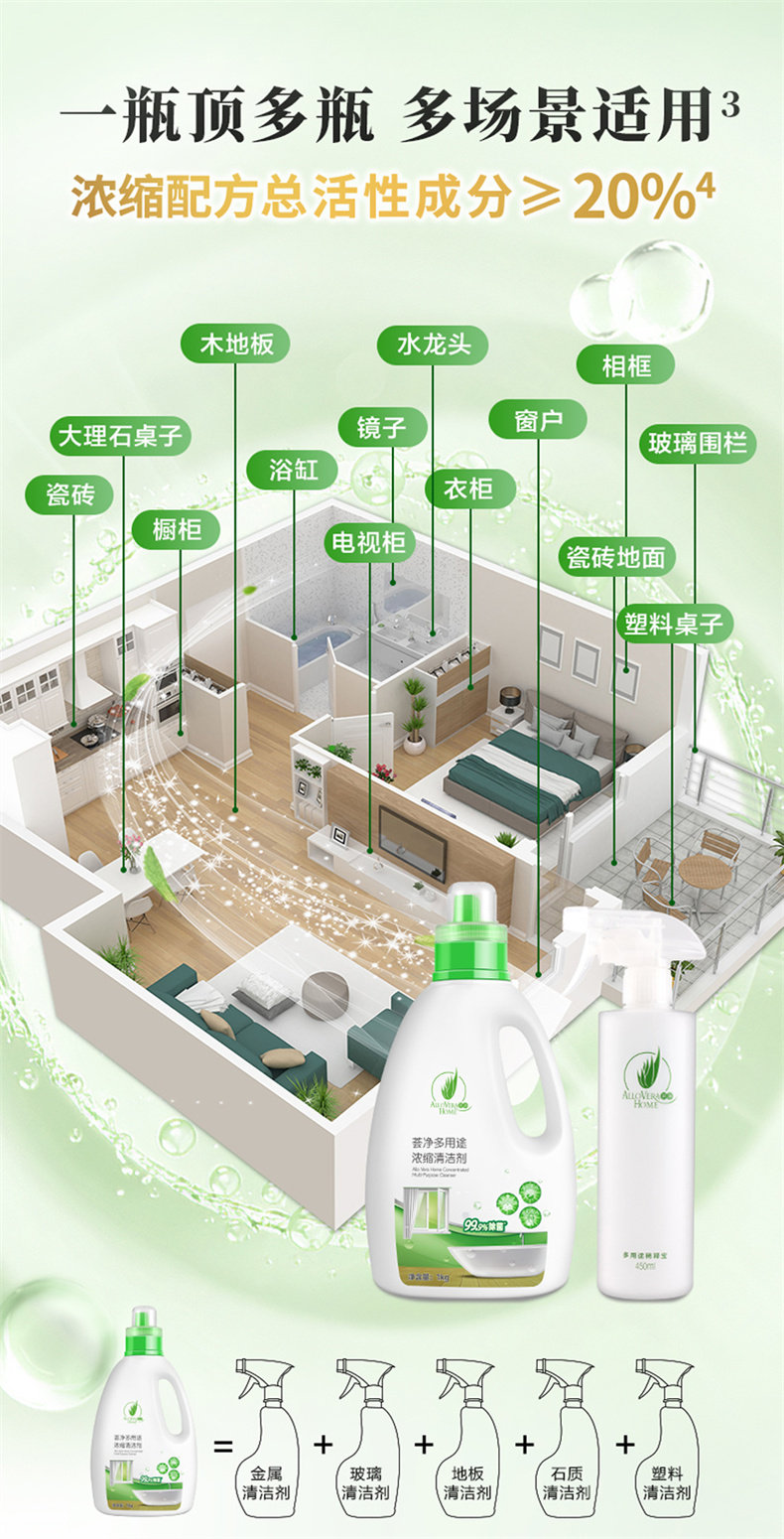 完美荟净多用途浓缩清洁剂芦荟多功能厨房浴室瓷砖强力去污清洗剂