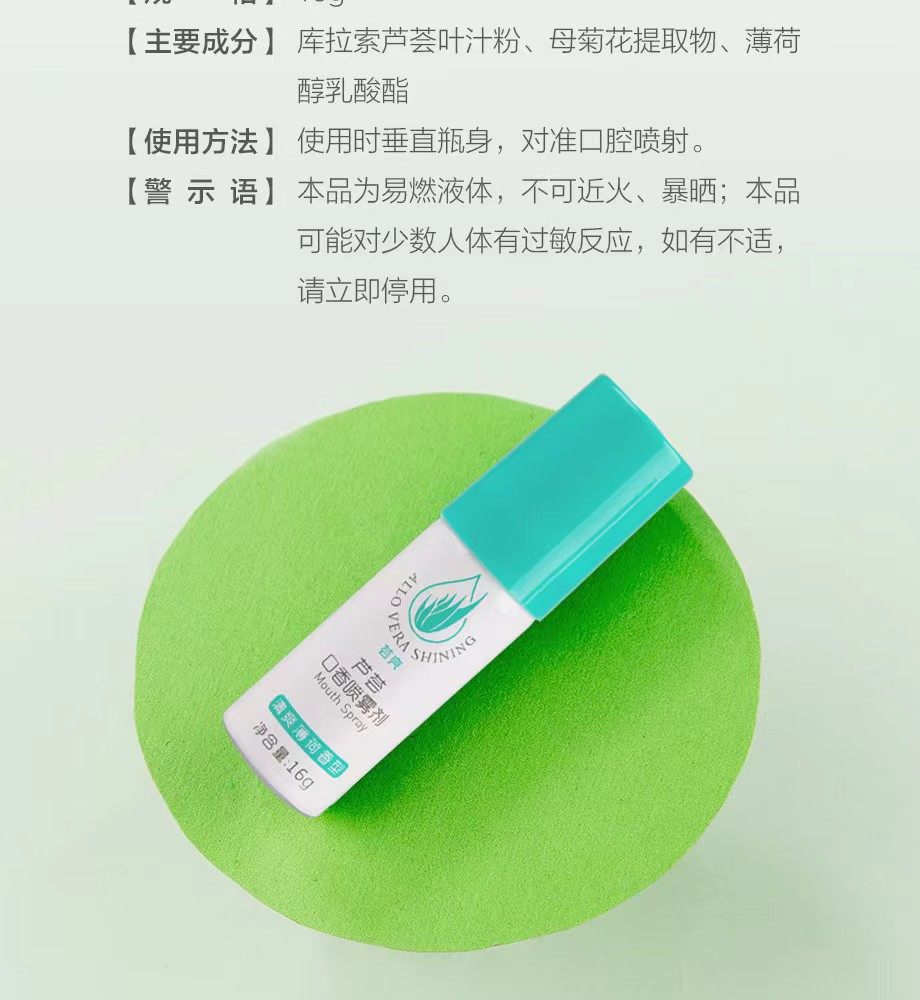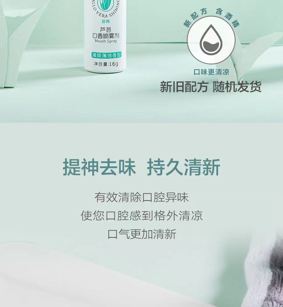 完美荟亮芦荟口香喷雾剂清爽薄荷清凉提神去味持久清新方便携带
