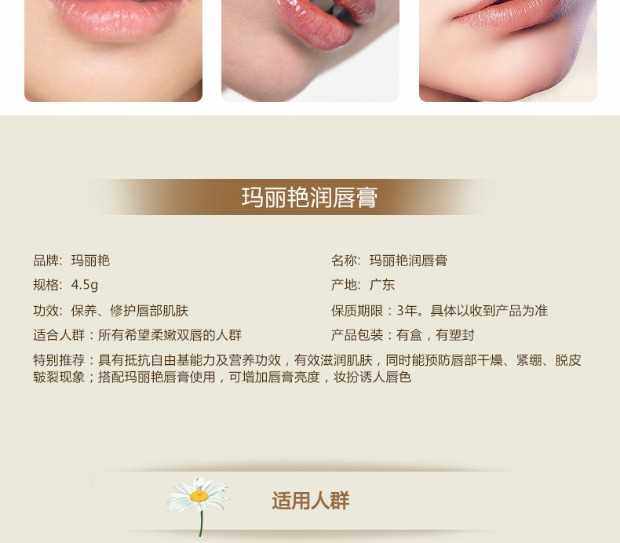 完美玛丽艳润唇膏 护唇膏 正品女保湿滋润补水无色淡化唇纹修护