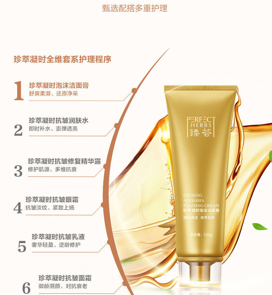 臻荟珍萃凝时抗皱泡沫洁面膏120g 专卖店正品 人参抗皱洁面乳