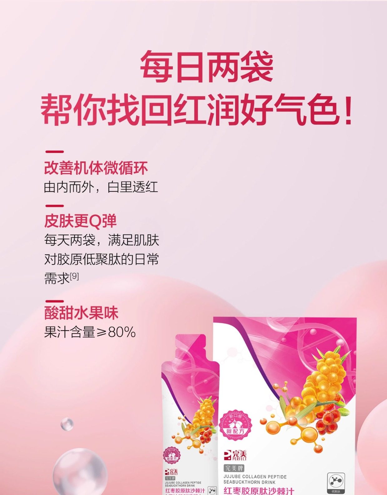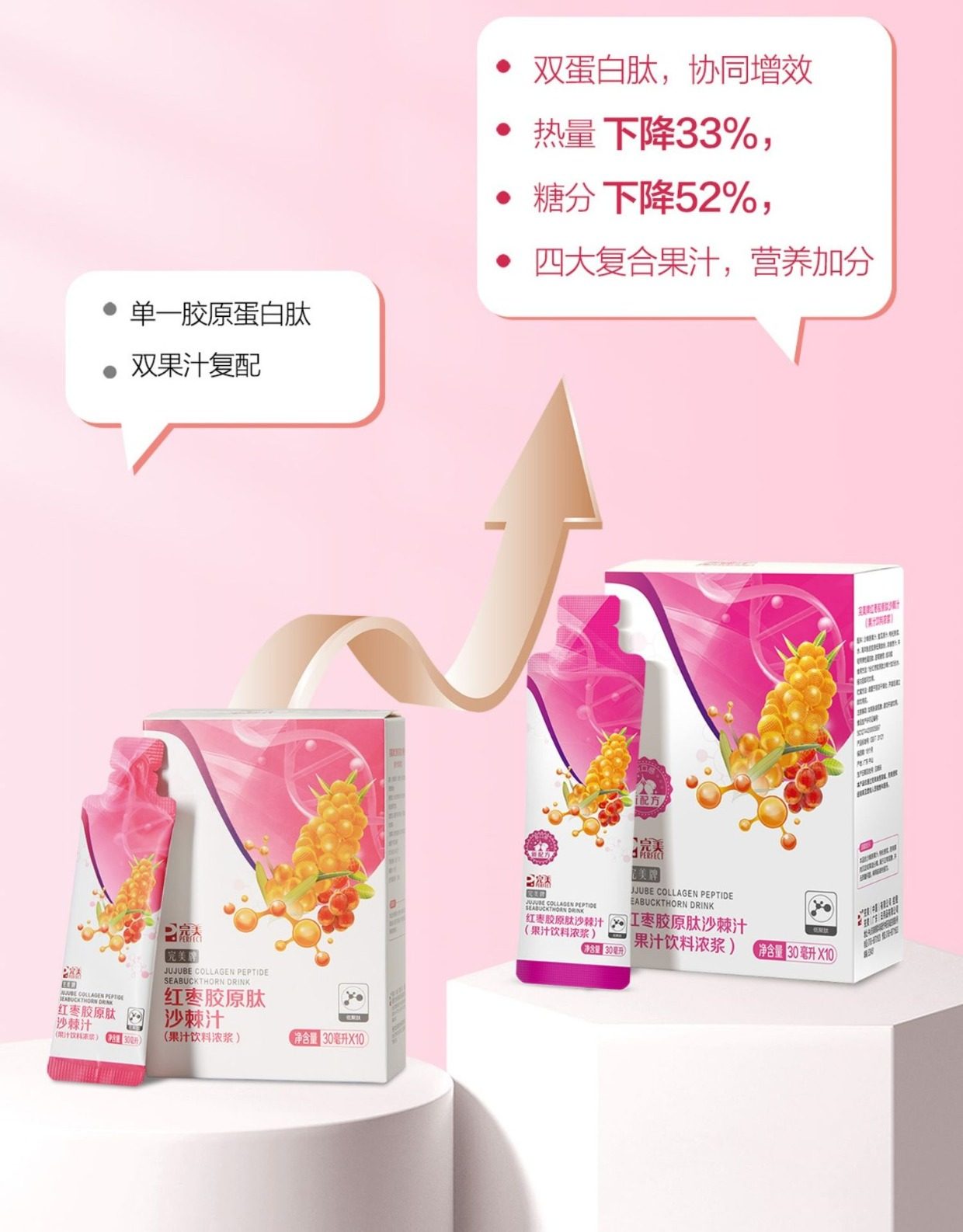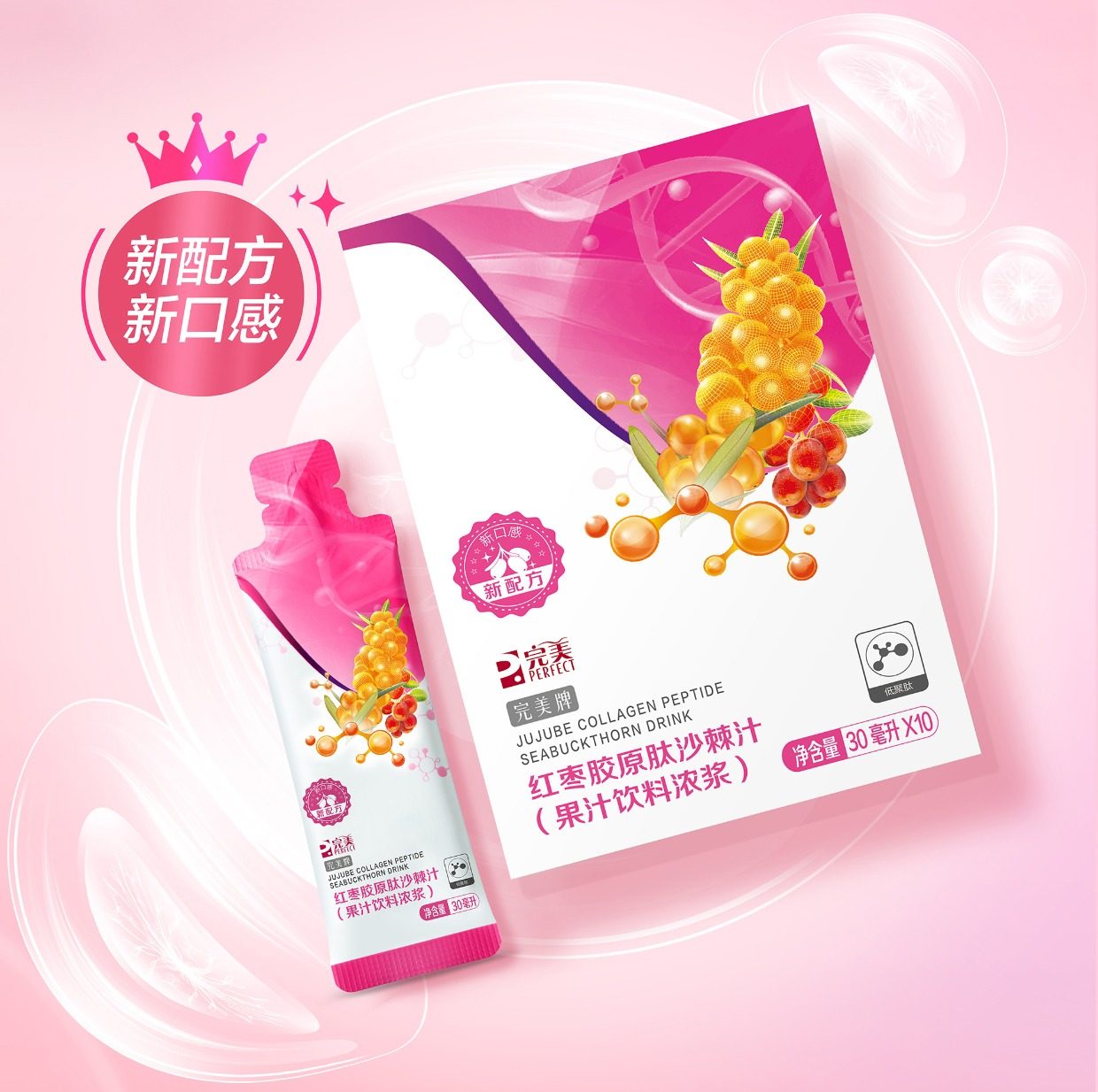 新款完美牌红枣胶原肽沙棘汁果汁饮料浓浆枸杞蛋白肽膳食纤维正品