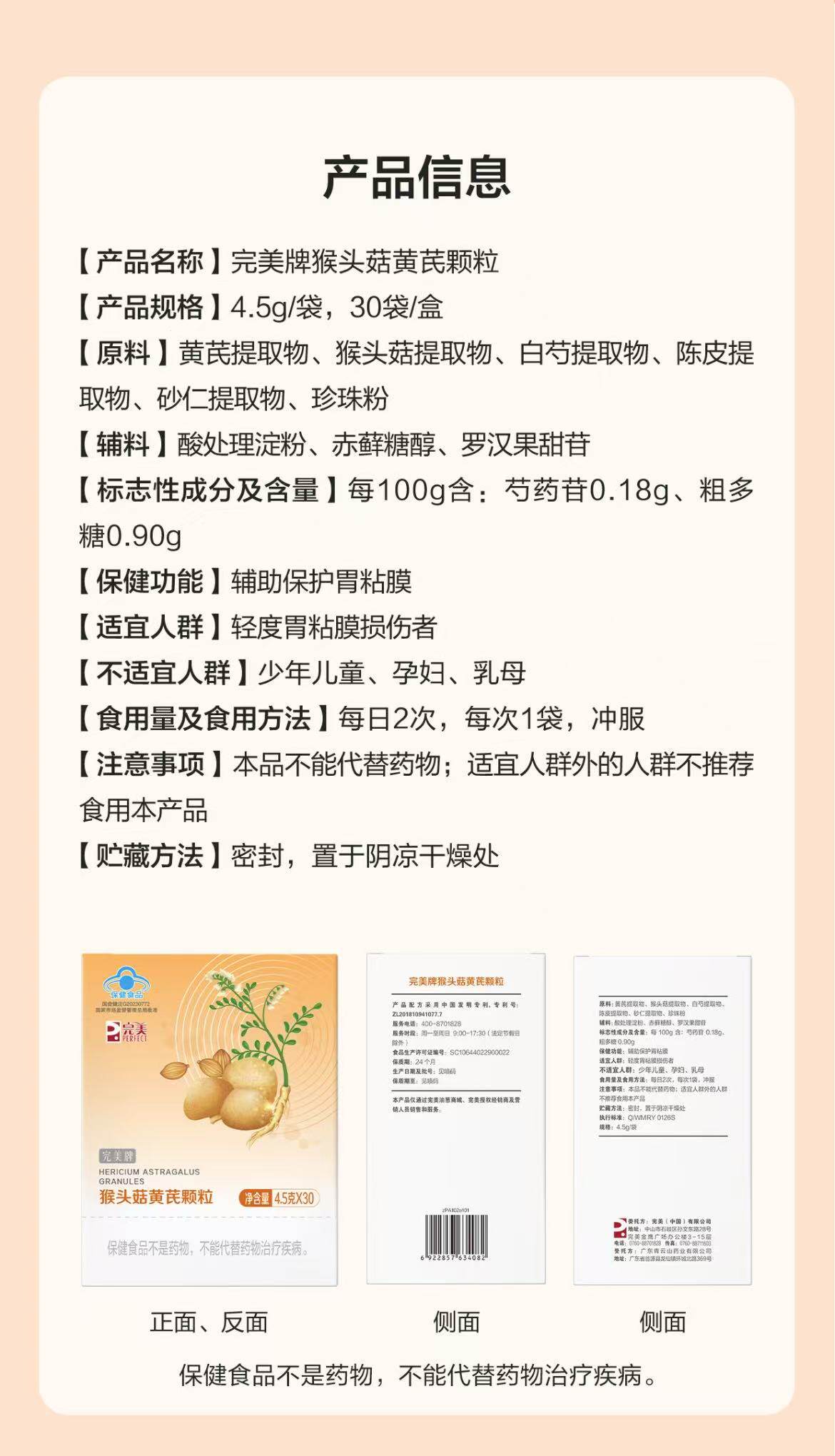 完美牌猴头菇黄芪颗粒呵护胃健康辅助保护胃 保证正品不刮码