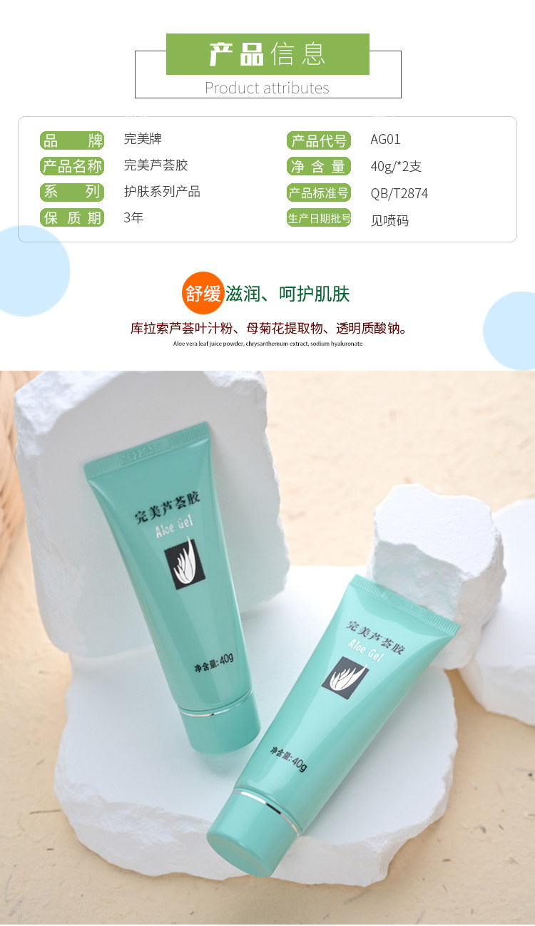 官方正品完美芦荟胶去痘痘淡印凝膏补水保湿晒后修复舒缓肌肤*2支